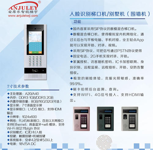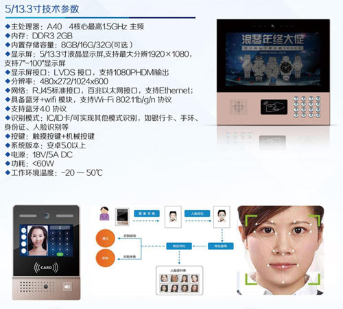 5/7/13.3寸人脸识别:极致的刷脸体验,克服光照敏感,准确率99.9%。