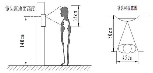 5) 主机安装高度不能过高,主机镜头离地面高度为140CM-150CM为最适合。