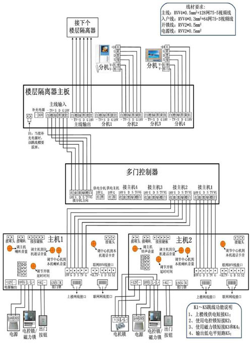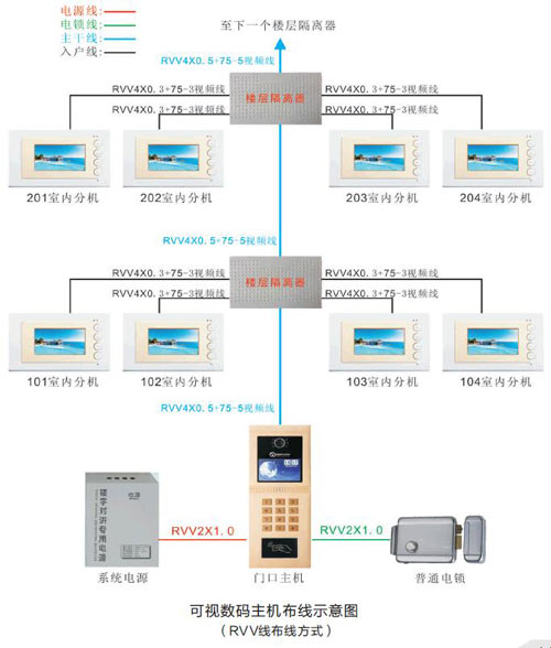 主干线:10层以下布RVV4*0.5mm2+75-5视频线,