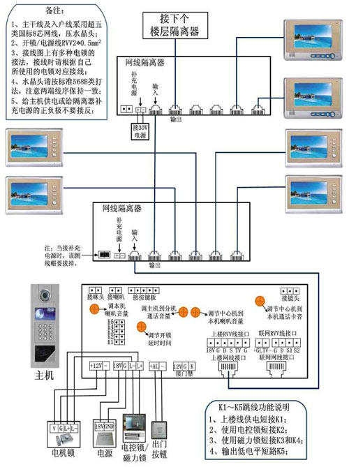 5、分机不能对讲:检查分机喇叭和各端口的连线是否正确;