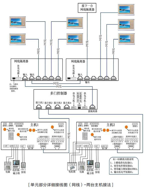 小区中有多个单元,有多台主机同时使用并和保安室联网时就得设置主机号,以区分哪台主机在呼叫中心管理机,中心管理机呼叫住户时,也得用到主机号。